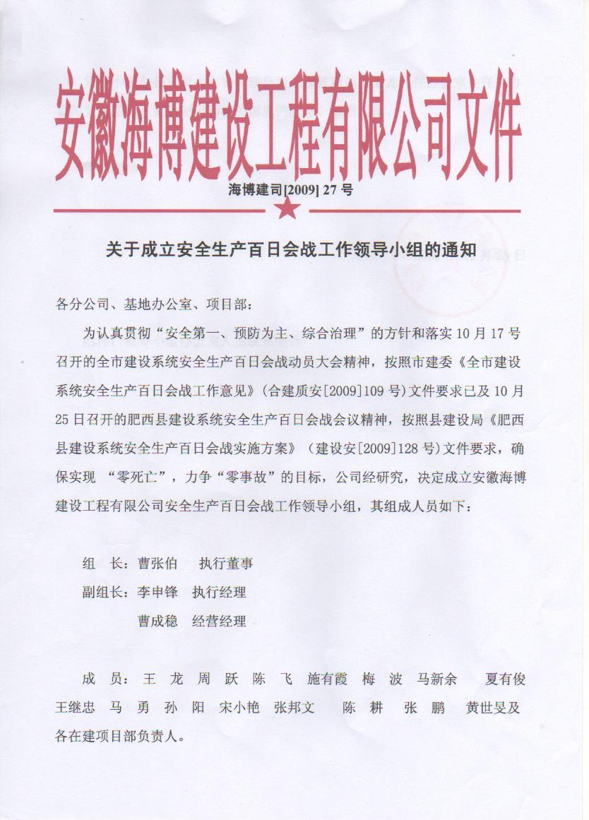 關于成立安全生產百日會戰工作領導小組的通知