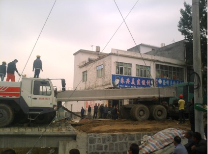 2011年5月22日下午6點(diǎn)30分,定廟橋的最后一片空心板梁順利吊裝到位,這標(biāo)志著該橋的主體工程已基本完成。