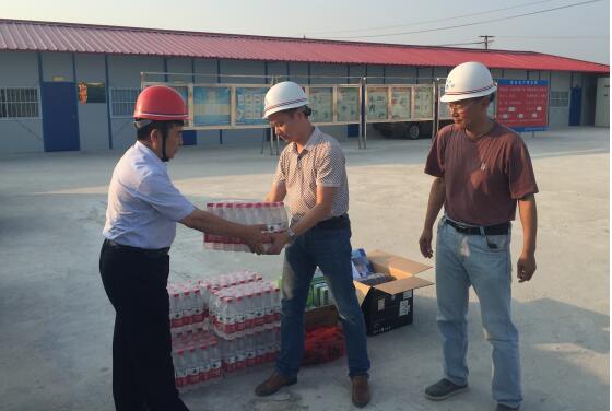 目前,已經(jīng)進入高溫施工期,為做好各施工現(xiàn)場安全生產(chǎn)、防暑、降溫工作,有效遏制夏季各類安全生產(chǎn)事故和高溫中暑事件發(fā)生,保障一線施工作業(yè)人員的安全、健康、清涼。公司以高度的責任感和緊迫感,由企業(yè)法人帶隊,深入施工現(xiàn)場,開展 “安全、健康、清涼”慰問活動,為一線施工作業(yè)人員送去企業(yè)的關(guān)懷和問候。同時要求各項目部,對一線施工人員的生命和健康抱以高度負責態(tài)度,把防暑降溫工作落實到每一個班組、每一個工人;“抓兩頭、歇中間”避免中午高溫期間進行室外施工作業(yè);確保施工人員宿舍、食堂、廁所、淋浴間等臨時設施滿足防暑降溫需求;為現(xiàn)場施工人員提供綠豆湯、茶水、常用防暑藥品,并配備相應的急救器材;加強對飲用水、食品、食堂衛(wèi)生管理,嚴防食物中毒事件;加強防暑降溫工作檢查,注重防火,排除隱患,確保安全生產(chǎn)。
