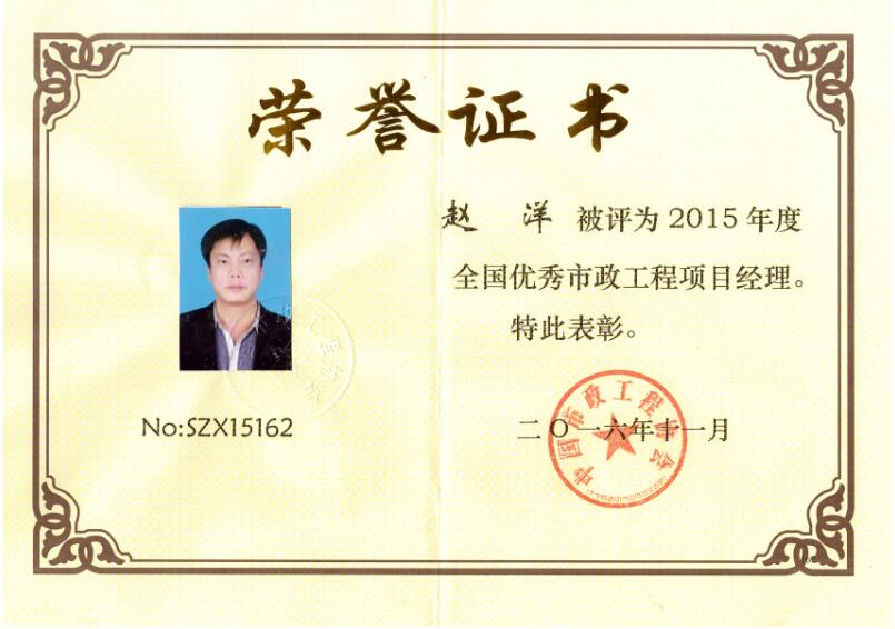趙洋同志自畢業(yè)至今,已在施工一線工作10余年,憑借出色的業(yè)績曾多次獲得市級、省級優(yōu)秀項(xiàng)目經(jīng)理殊榮及主管部門的嘉獎。作為項(xiàng)目負(fù)責(zé)人,他嚴(yán)以律己,率先垂范,嚴(yán)格執(zhí)行施工質(zhì)量安全標(biāo)準(zhǔn),時(shí)刻銘記著作為建設(shè)者的責(zé)任和使命,為打造一項(xiàng)又一項(xiàng)精品工程奉獻(xiàn)青春。