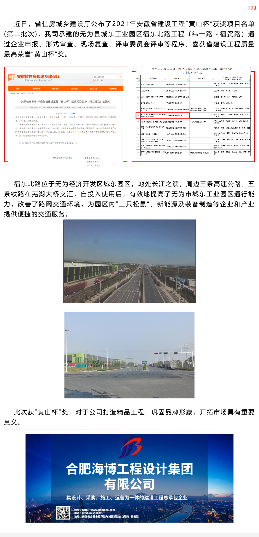 賀我司榮獲安徽省建設工程“黃山杯”獎